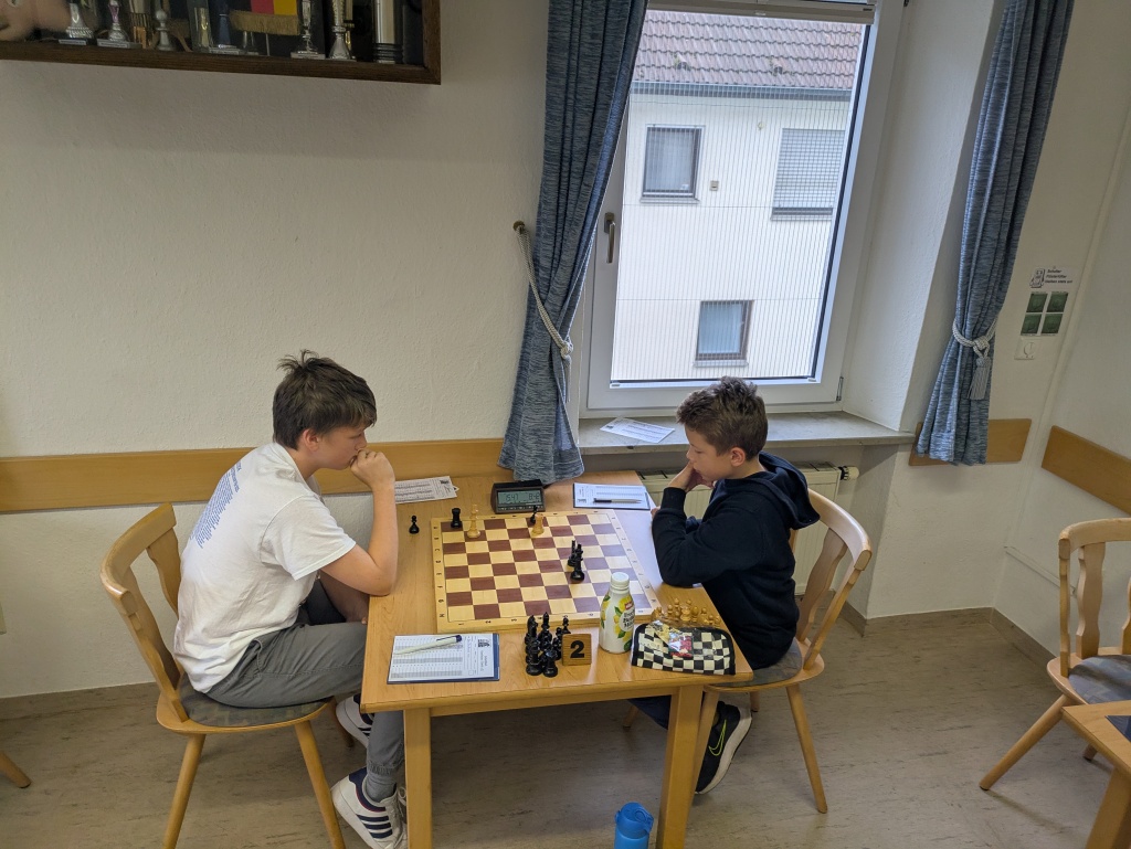 Die letzte Partie spielte Ben Kaufmann (Brett 2) gegen den Deutschen Vizemeister der U10, Jan Schmidt (siehe Titelbild).