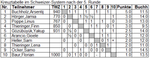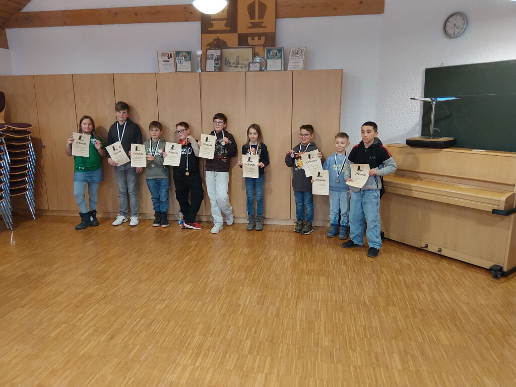 Beste Sontheimerin wurde mit 3 Punkten aus 5 Spielen Jamia Hörger. Sie wurde Gesamtzweite und natürlich Siegerin der Mädchenwertung. Nur einen Platz hinter ihr kam der punktgleiche Linus Poppe mit einem Buchholzpunkt weniger ins Ziel. Yakup Gözübüyük und Giole Arancio belegten mit jeweils 2,5 Punkten die Plätze 5 +6. Herzlichen Glückwunsch allen Vieren zu den starken Leistungen!