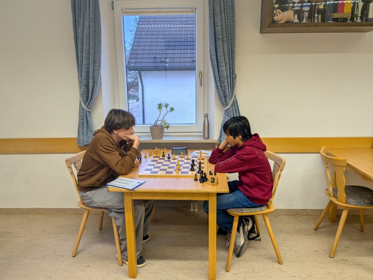 In der 1.Runde kam es zum „Bruderduell“ und Sontheim 6 wurde seiner Favoritenrolle klar gerecht. So gewannen für die Sechste die Brüder Samuel und Raphael Schmid und Kaya Kaplan. Den Ehrenpunkt für Sontheim 7 holte Elias Dörner in kämpferischer Manier am 2.Brett.