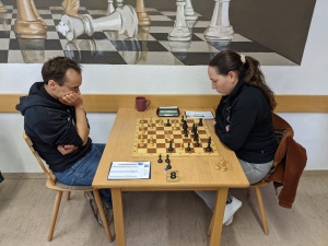 In der 1.Runde bekam es Sören mit dem sympathischen Franken Leon Bauer zu tun. Dieser spielte zu vorsichtig in der Eröffnung und stand schließlich mit zwei Minusbauern da. Die Stellung war trotzdem nicht so einfach, doch schließlich setzte sich Sören durch. In der 2.Runde wartete mit Cedric Chassard (Saarland) ein motivierter Jugendlicher auf Sören. Nach unspektakulärer Eröffnung und Mittelspiel fand Sören mit Zeitvorteil im Turmendspiel die besseren Züge und konnte gewinnen. In der 3.Runde kam es dann zum „Lospech“, denn mit FM Thilo Ehmann (mit Zahl auf IM-Niveau, Baden) wartete der Turnierfavorit und spätere Pokalsieger (mit 5 aus 5!) auf Sören. Mit Schwarz fühlte sich Sören bereits nach wenigen Zügen nicht so wohl. Im 14.Zug griff er dann mit der großen Rochade fehl und sah (leider erst) nach dem Zug sofort, was er angerichtet hatte. Er verlor zwei Figuren für einen Turm und musste in der Folge schnell die Segel streichen. Schade. Denn so leicht muss man es seinem Gegner dann auch nicht machen, zumal die Stellung trotz Sörens schlechtem Gefühl völlig ausgeglichen war.
