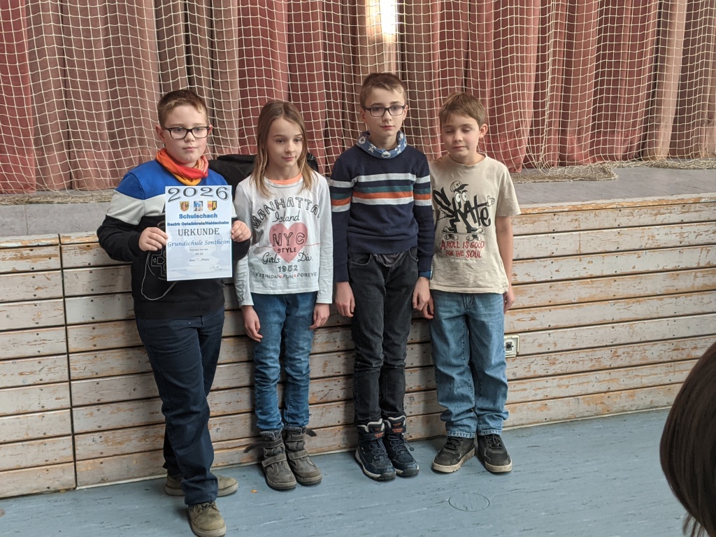 Am 20.01.2026 fanden in Täferrot die Bezirksschulschachmeisterschaften statt. Auch unsere GS stellte ein Team mit vier unserer Mitglieder in der WK Grundschule, in welcher insgesamt 13 Teams an den Start gingen.