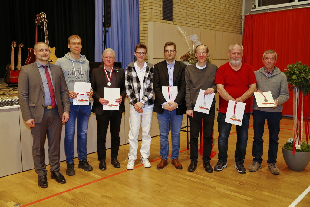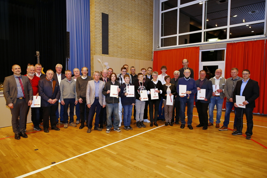 Danach waren zahlreiche Ehrungen an der Reihe, zunächst die Blutspender und verdiente Ehrenamtliche aus unterschiedlichsten Bereichen. Und dann der Sport, aber anders als erwartet, wir kamen in den Genuss einer herausragenden Werbung für unseren Sport und unseren Verein.