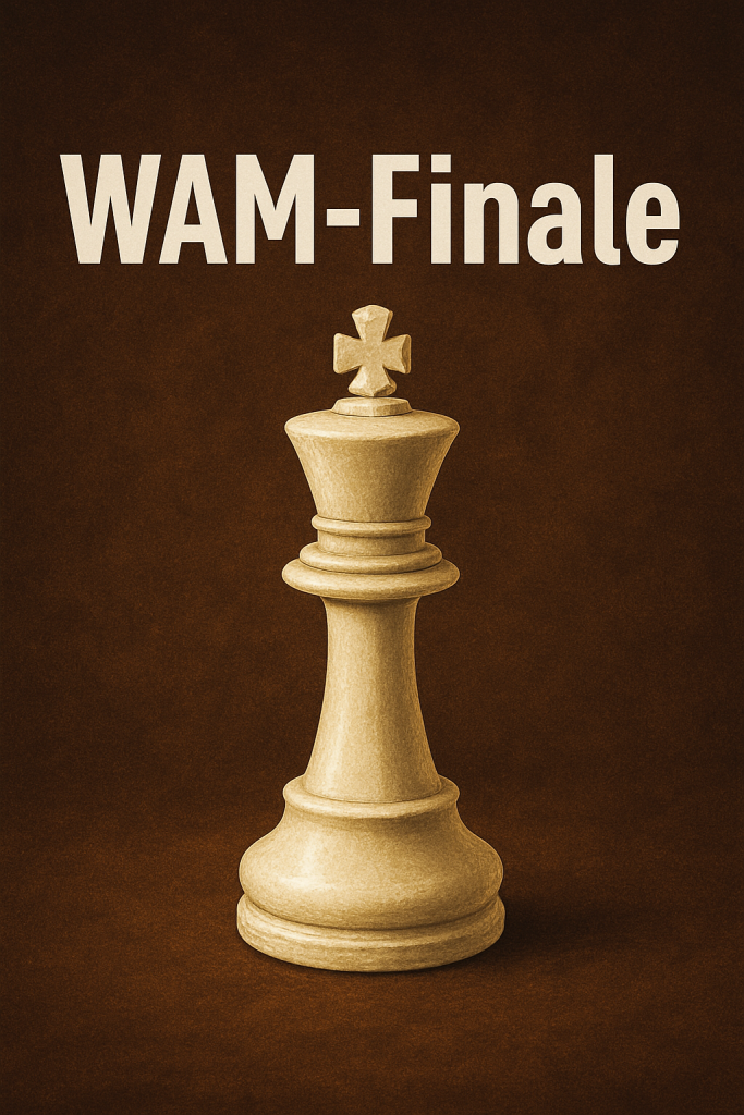 Am 6.9. und 7.9. findet in Nürtingen das WAM-Finale statt bei dem Jonas, Ben und Thorsten in ihren jeweiligen Gruppen um Punkte, DWZ und die Amateurmeisterschaft spielen.